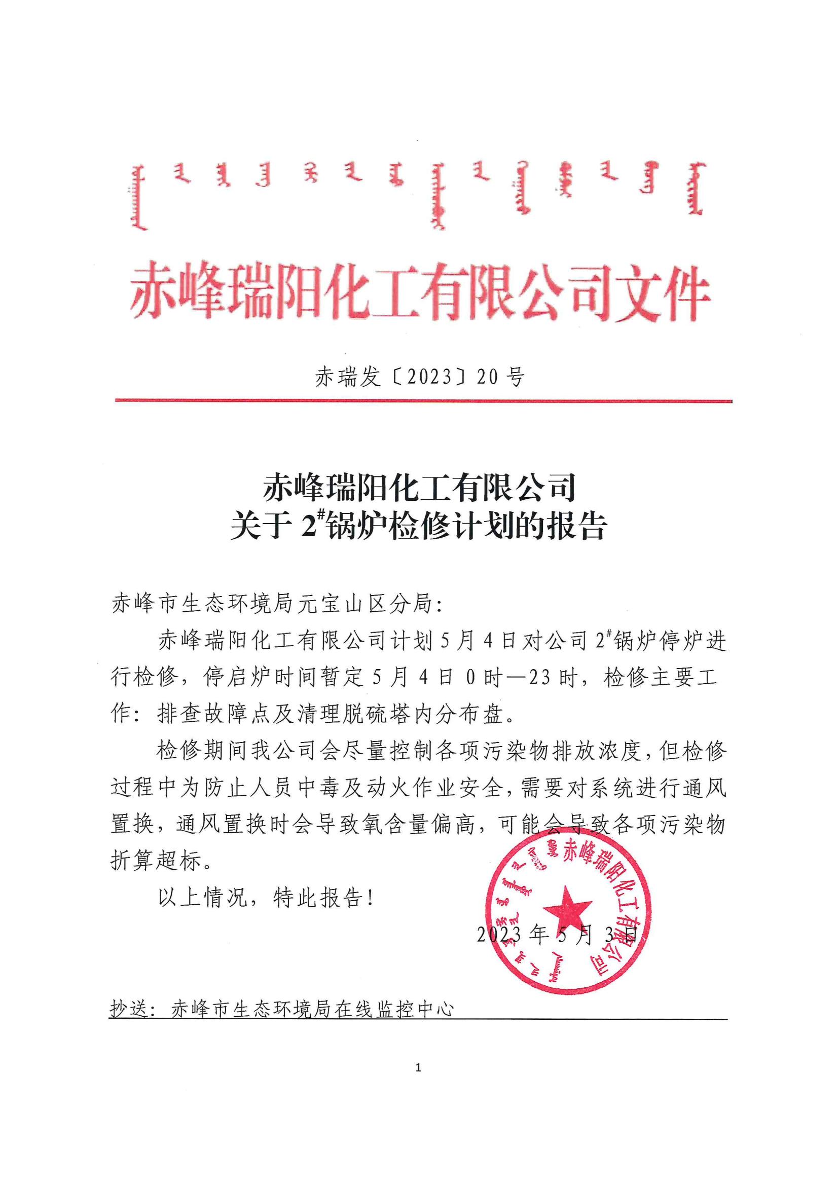 赤峰瑞陽化工有限公司2#鍋爐計(jì)劃檢修報(bào)告