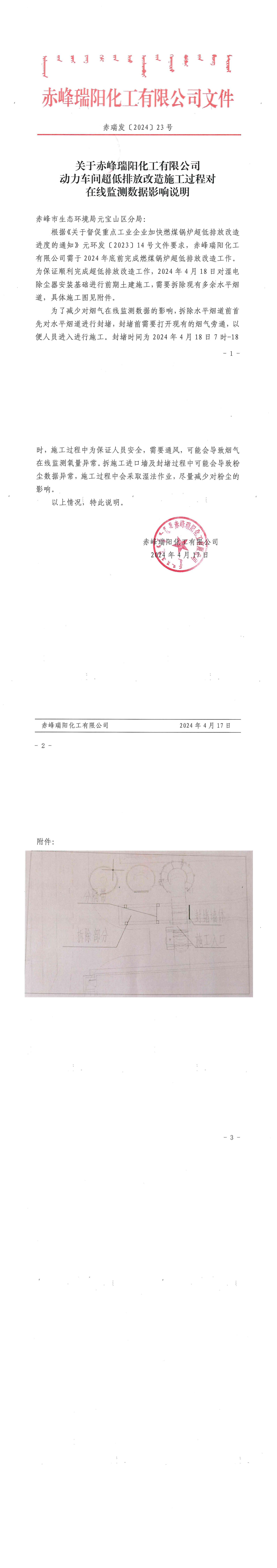 赤瑞發(fā)〔2024〕23號(hào):動(dòng)力車(chē)間超低排放改造施工過(guò)程對(duì)在線監(jiān)測(cè)數(shù)據(jù)影響說(shuō)明